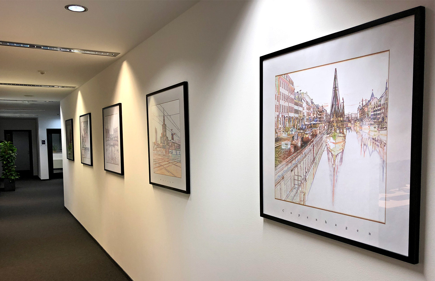 Nasze zdjęcia dopełniają wnętrza biur. Wszystkie propozycje opracowujemy indywidualnie dla potrzeb klienta, a uniwersalny czarny kolor ram dodaje pięknego kontrastu w przypadku białych ścian.